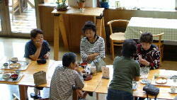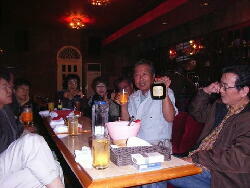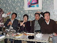 gokuくんこんばんは・・実はkemが肝心なときにカメラを忘れたんです・・2次会終わってから写したんでメンバーが限られてます。泊まらず帰った人が2名(西熊君とももさん)で、ももさんは西熊君を送るため犠牲になりました。オッコは早朝、忽然と蒸発しました。ソエケンはご飯を食べてから函館へと向かいました。そんな訳で以上のような写真しかありません。全員集合はpoさんがアップすると思うのでそれまでお待ちください。 |
